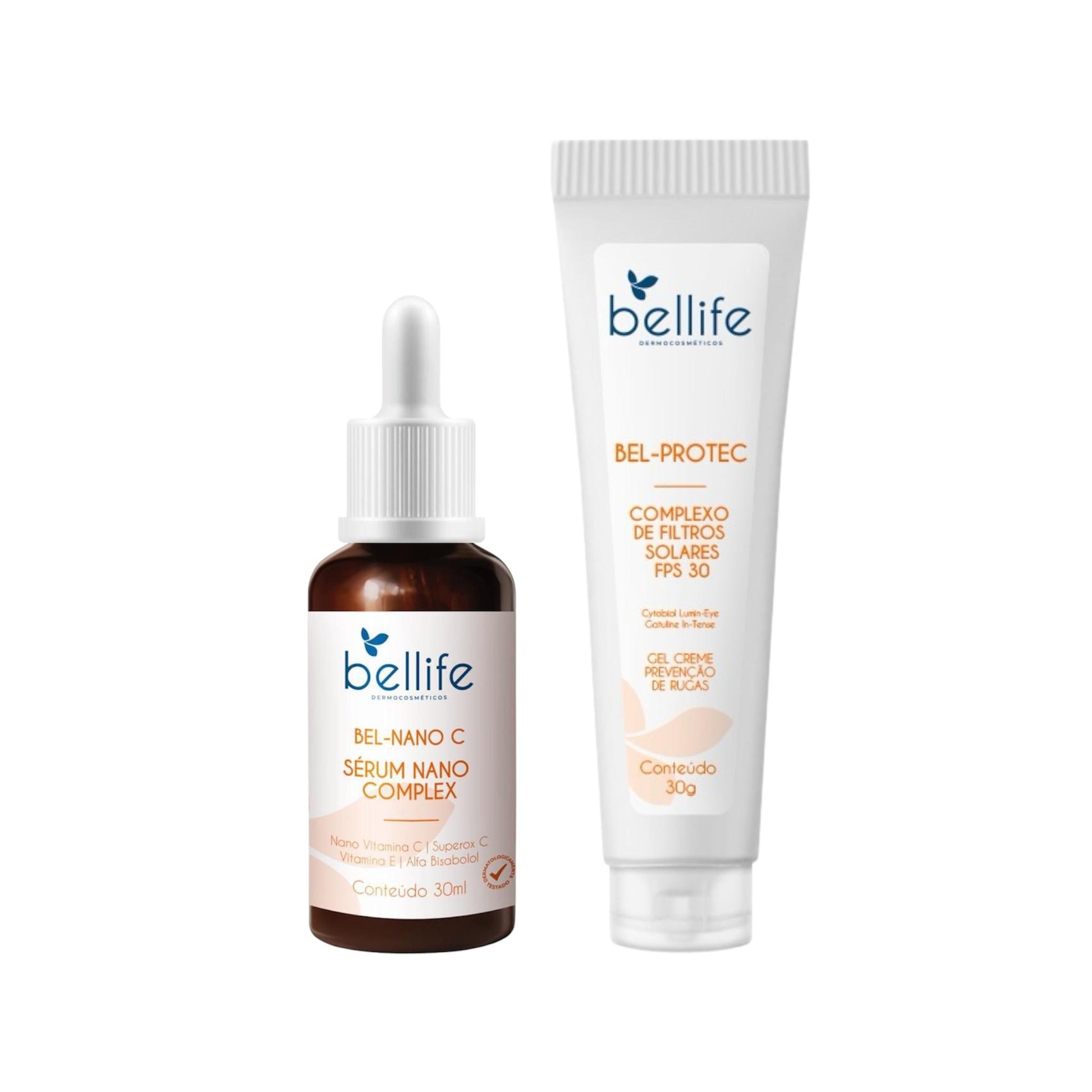 Nano Vitamina C: potente ação antioxidante, protegendo a pele contra dos radicais livres, deixando a pele mais uniforme e iluminada. Esse composto também age na síntese de colágeno, garantindo pele mais firme e sem rugas;